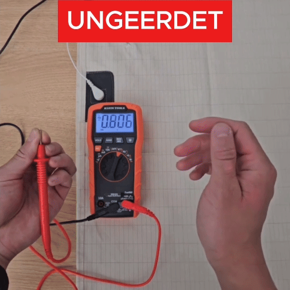Stecke das Kabel in den Erdungsadapter. Unsere Produkte kommen mit einem speziellen Kabel und Adapter, der den Erdungsanschluss der Steckdose nutzt, ohne Strom zu leiten.